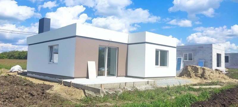 Уютный дом от застройщика «ДМ Групп» представляет собой идеальное сочетание комфорта и функциональности. Внутреннее пространство дома включает просторную кухню-гостиную с панорамными окнами и выходом на террасу, что создает светлую и уютную атмосферу. Три спальни обеспечивают достаточно места для всех членов семьи, гарантируя уединение и комфорт.